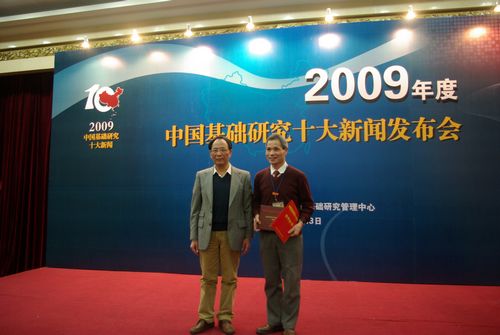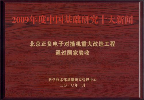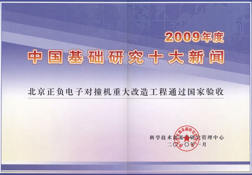 1月13日上午,科技部基础研究管理中心在永兴花园饭店举办新闻发布会,正式公布“中国基础研究十大新闻”的评选结果。“北京正负电子对撞机重大改造工程通过国家竣工验收” 位列2009年“中国基础研究十大新闻”榜首。北京正负电子对撞机重大改造工程(BEPCII)工程副经理张闯、李卫国出席发布会并领取获奖证书及奖牌。
