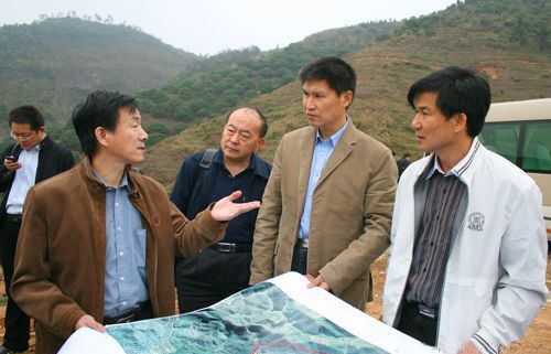 奚基伟副所长在建设地现场向詹文龙副院长介绍散裂中子源项目详勘进展情况