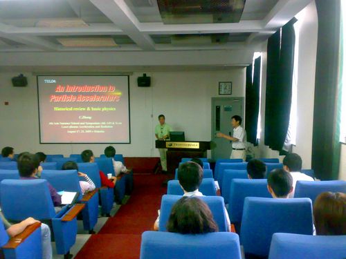 为使培训班更有成效,培训期间组织了两次加速器专题的考试,其中表现优秀的学员将被选拔参加 2010年8月由高能所在北京举办的“第六届世界华人物理学会加速器学校(OCPA Accelerator School 2010)”。本次加速器学校以“散裂中子源和强子医用加速器”为主题,届时将邀请来自美国和台湾等地的20多位专家授课,70多位学生参加培训。