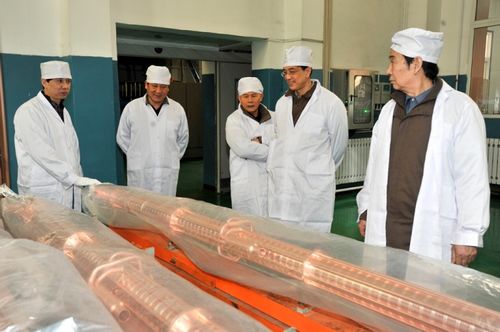 专家组听取了氢炉项目组关于设备研制和生产调试的报告,并到现场参观了整洁的氢气保护钎焊车间和全自动清洗装置,以及已经焊接成功了的一小批S波段加速管实物,详细询问了设备在操作中的运行、安全、效率等问题,提出了很多宝贵意见。