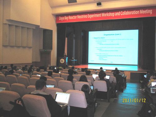 2011年1月10日至15日,大亚湾反应堆中微子实验项目第十六次国际合作组大会在深圳市大亚湾反应堆中微子实验站和深圳大学召开。会议由中方项目经理兼发言人王贻芳研究员和美方发言人、美国劳伦斯伯克利国家实验室的陆锦标教授共同主持。来自中国(含香港、台湾)、美国、俄罗斯、捷克等国内外三十多个合作机构的一百多位科学家和工程技术人员出席了此次会议。在持续六天的会期内,相继开展了中心探测器、反符合探测器、探测器系统接口、运行调试、离线软件共五个专题研讨会,以及为期两天的总结大会。