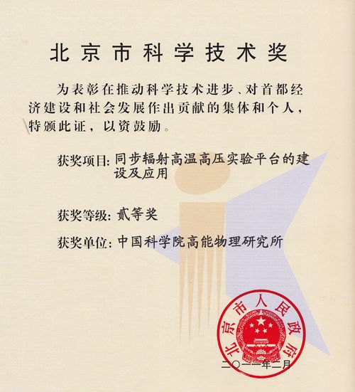高能所 “同步辐射高温高压实验平台的建设及应用”获二等奖; “500MHz超导高功率输入耦合器”获三等奖;“直接醇燃料电池纳米催化剂的设计、制造及表征科学”获一等奖(第二完成单位)。