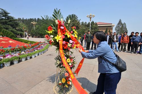 为缅怀先烈,激励今人,高能所全体参观人员在“五大书记”铜像前举行了隆重的献花行礼仪式,向领袖敬献花篮,并由黄克诚大将之女黄楠同志整理敬联,全体人员向领袖三鞠躬,表达了对伟人的敬仰和对革命先烈的无限怀念。