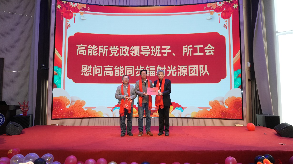高能所工会主席罗小安代表所工会致辞并赠送慰问,他高度赞扬了HEPS团队在过去一年中展现出的拼搏精神,祝贺HEPS提前通过性能工艺验收,期待HEPS在开放运行阶段再创佳绩。