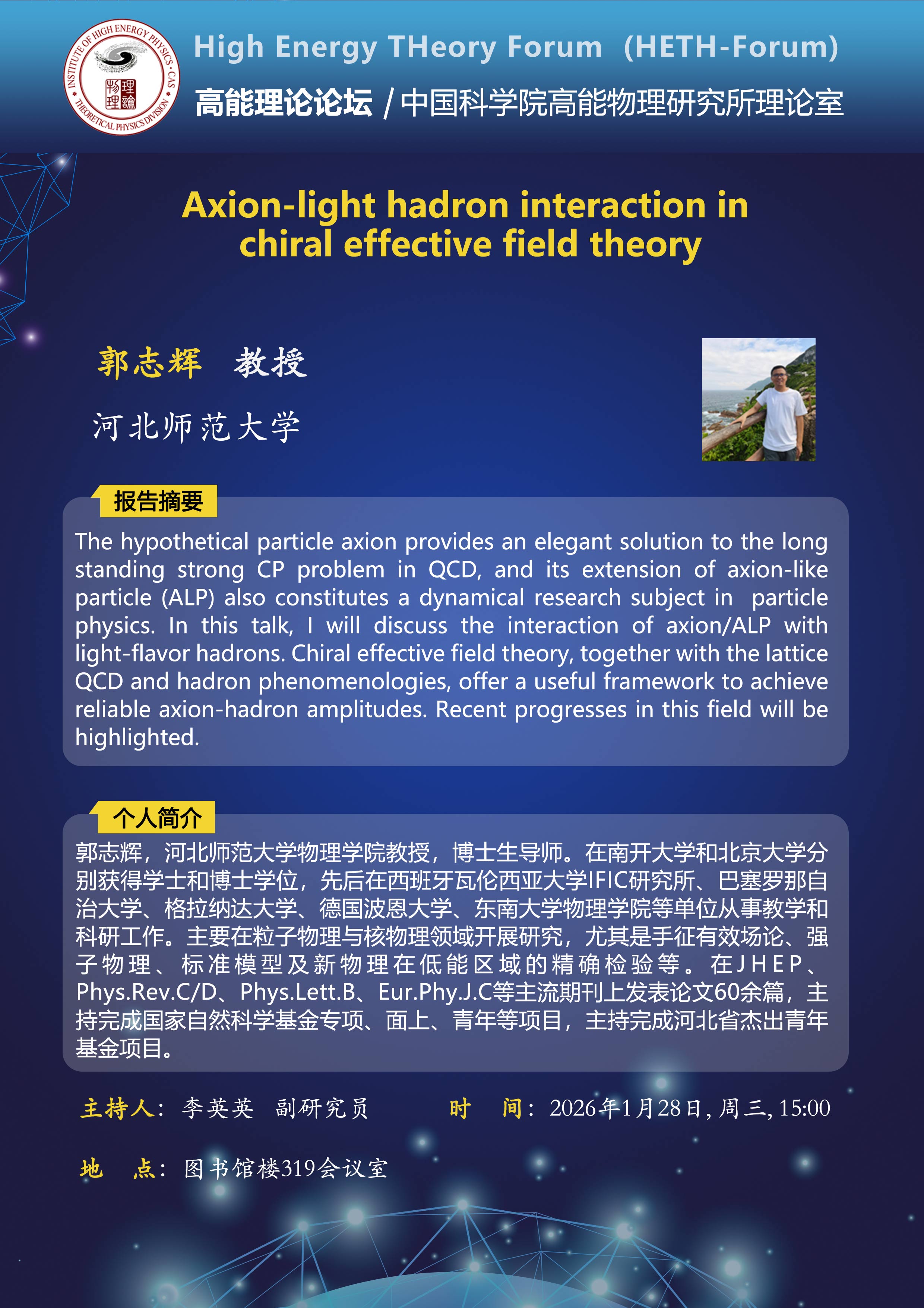 【01.28】高能理论论坛第121期--Axion-light hadron interaction in chiral effective field theory