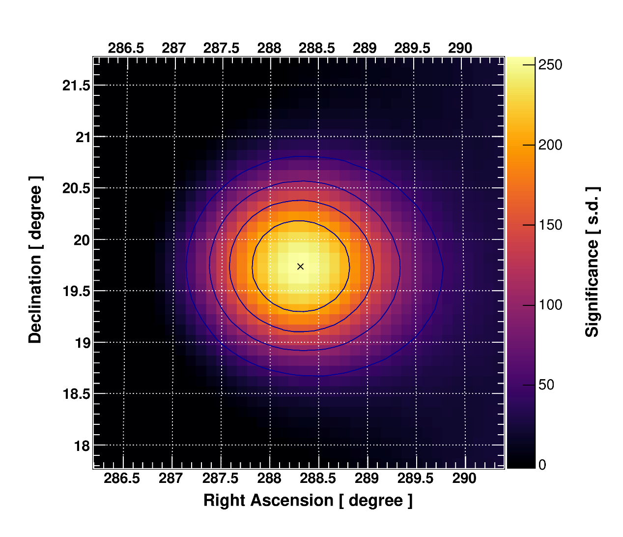 图1:“拉索”以超过250倍标准偏差的高显著水平观测到了伽马射线暴GRB 221009A的爆发。