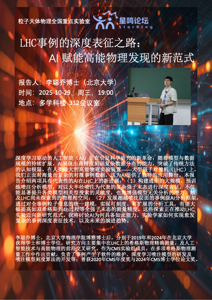 星鸣论坛第8期 LHC事例的深度表征之路:AI赋能高能物理发现的新范式
