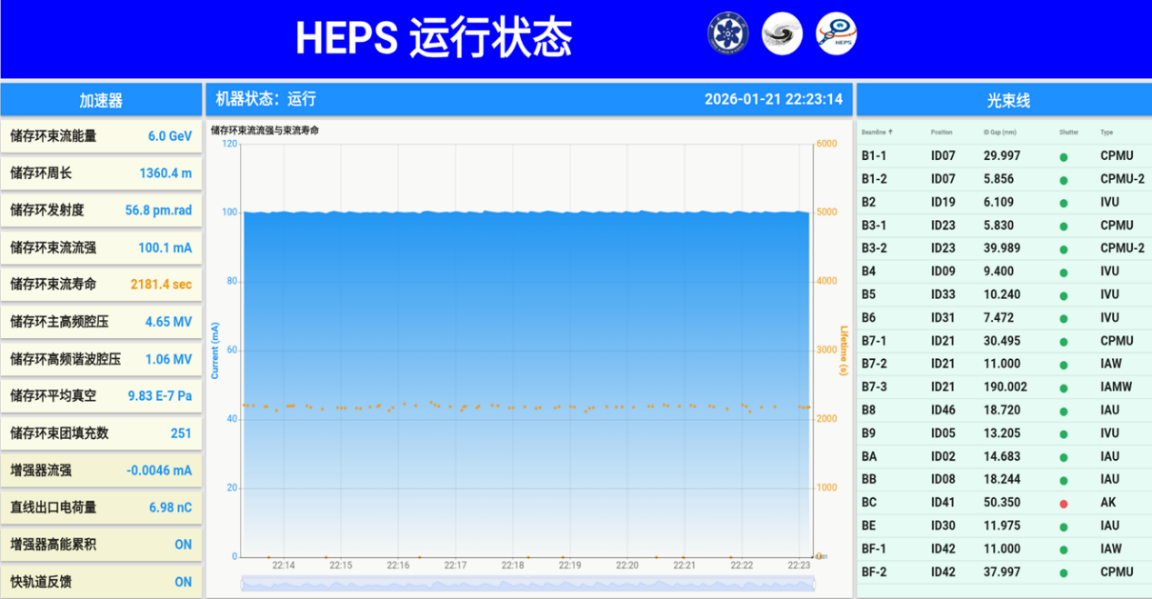 作为我国首台高能量同步辐射光源、世界亮度最高的第四代同步辐射光源之一,HEPS的运行稳定性与束流品质直接影响用户实验成效。2025年10月29日HEPS通过工艺验收,标志着HEPS加速器及光束线验收指标全面达标,实现并保持高水平稳定运行,尽快支撑用户产出重大成果,是HEPS工艺验收之后的首要任务。