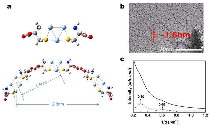 半胱氨酸-Ag团簇水凝胶结构的实验及理论研究贵金属团簇由几个至上百个原子组成,物理尺寸较小(< 2 nm ) ,具有确定的发色团组成(即团簇核包含明确的原子数目,如Ag3 、 Ag4 、 Au25等) ,其发射波长可通过制备条件的改变来调节(紫外到近红外波段) ,且量子...