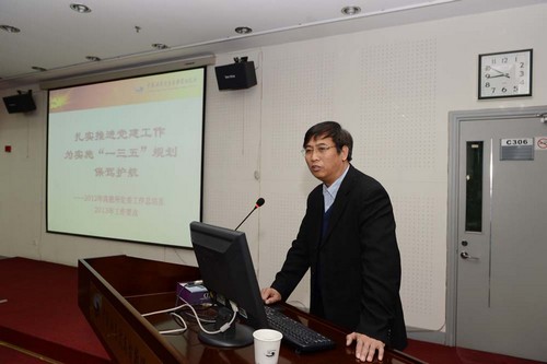 党委书记王焕玉作了题为《扎实推进党建工作,为实施“一三五”规划保驾护航》的党委工作报告。报告从坚持理论学习,规范组织工作,紧抓党风廉政建设,开展创新文化建设,发挥工、青、妇、离退休和统战工作作用方面,详细阐述了高能所党委在过去一年中的工作和所取得的成绩。同时,结合我所实际,所党委制定了2013年的工作要点。一是深入贯彻落实十八大精神和习近平重要讲话,做好宣传学习工作;二是做好宣传教育,切实加强思想理论建设;三是加强组织建设,增强党组织的凝聚力和战斗力;四是做好异地大科学装置基地的党群组织建设;五是改进工作作风,开展好党的群众路线教育实践活动;六是推进惩防体系建设,全面推进反腐倡廉各项工作;七是凝练核心价值体系,以创新文化推动创新实践;八是多方努力,全民共建和谐研究所。