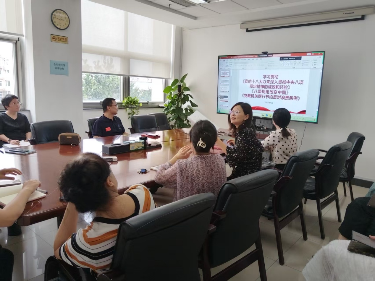 党支部书记王欢以“深思细悟新思想 践行使命、护航抢占科技制高点”为主题讲党课,她介绍了参加深入贯彻中央八项规定精神学习教育和党员联学班的体会,带领大家重温了党和国家领导人对科技事业的关心和高瞻远瞩。会议当天正值日本战败投降80周年,会议还重温了抗日战争的艰苦历程,勉励大家,以科技为刃、笃行报国之志。