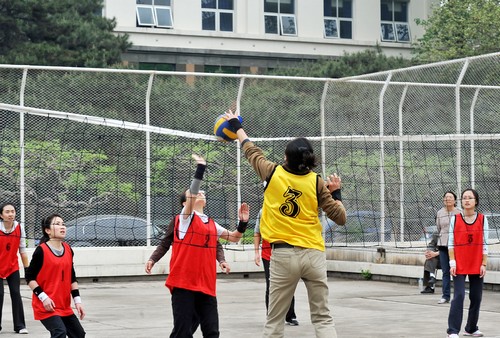 比赛在午间举行,赛场上队员们斗志昂扬,精彩场面层出不穷,发球、接球、拦网、吊球----排球场上队员们配合默契,精彩不断,在处于劣势时,队友之间相互鼓舞,没有一句抱怨和指责,形成了较强的集体凝聚力。带球前进、封堵抢断、突破上篮-----篮球场上队员们拼抢激烈,招式精妙,比赛过程扣人心弦,永不服输的体育精神在他们(她们)身上体现的淋漓尽致,他们(她们)的精彩表现引来场下观众的阵阵喝彩。在一个多月的比赛时间里,每当午时,许多部门的党、政、工领导亲临现场为队员们鼓劲加油!特别是决赛中场休息时,实验中心的7名篮球宝贝舞感十足,激情投入,为双方运动员加油,给赛场的紧张气氛带来些许放松,赛场上下呈现出团结、协作、拼搏的精神风貌。