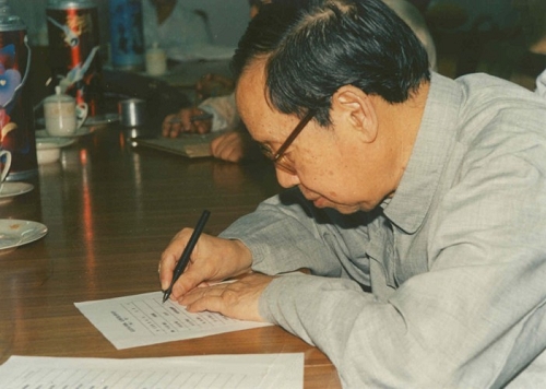 1989年9月15日赵忠尧在北京正负电子对撞机、北京谱仪鉴定书上签字