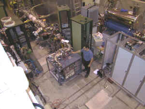 最靠近束流管道处,有一个硅条顶点探测器,为每个径迹测量距沿束流线40 cm的束流轴6.3 cm 和 11 cm远的两对坐标。束流管道由铍制造而成,直径为16 cm,内部真空为10-15大气压。 |