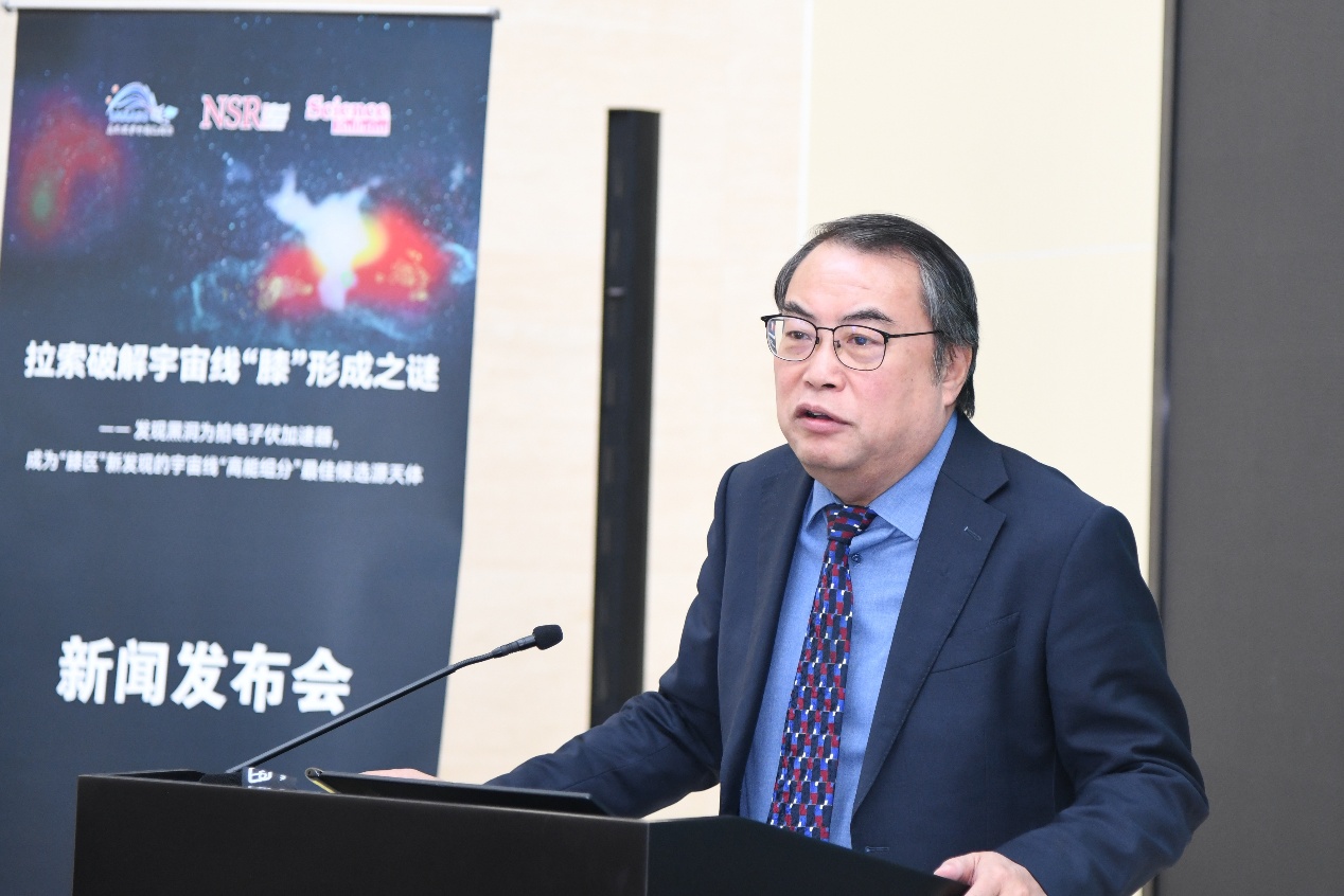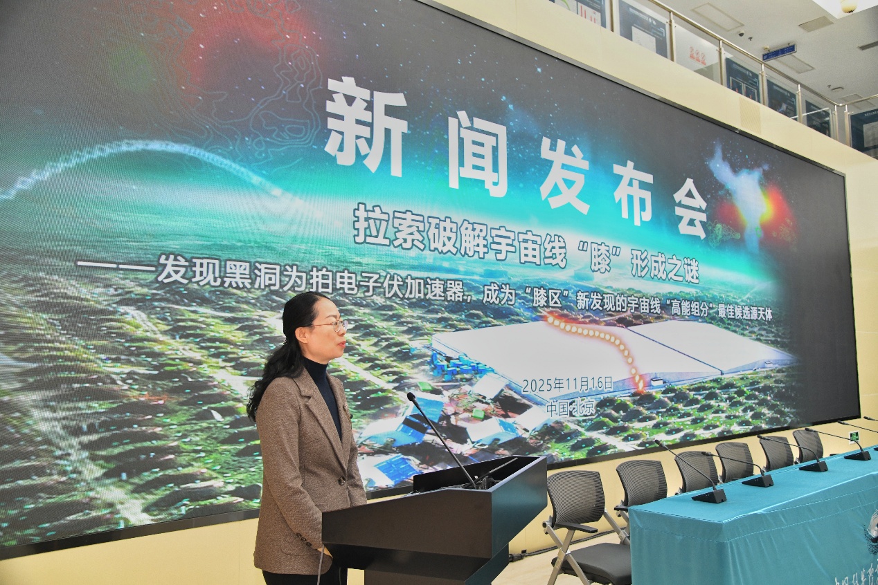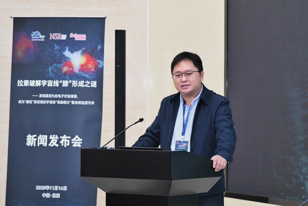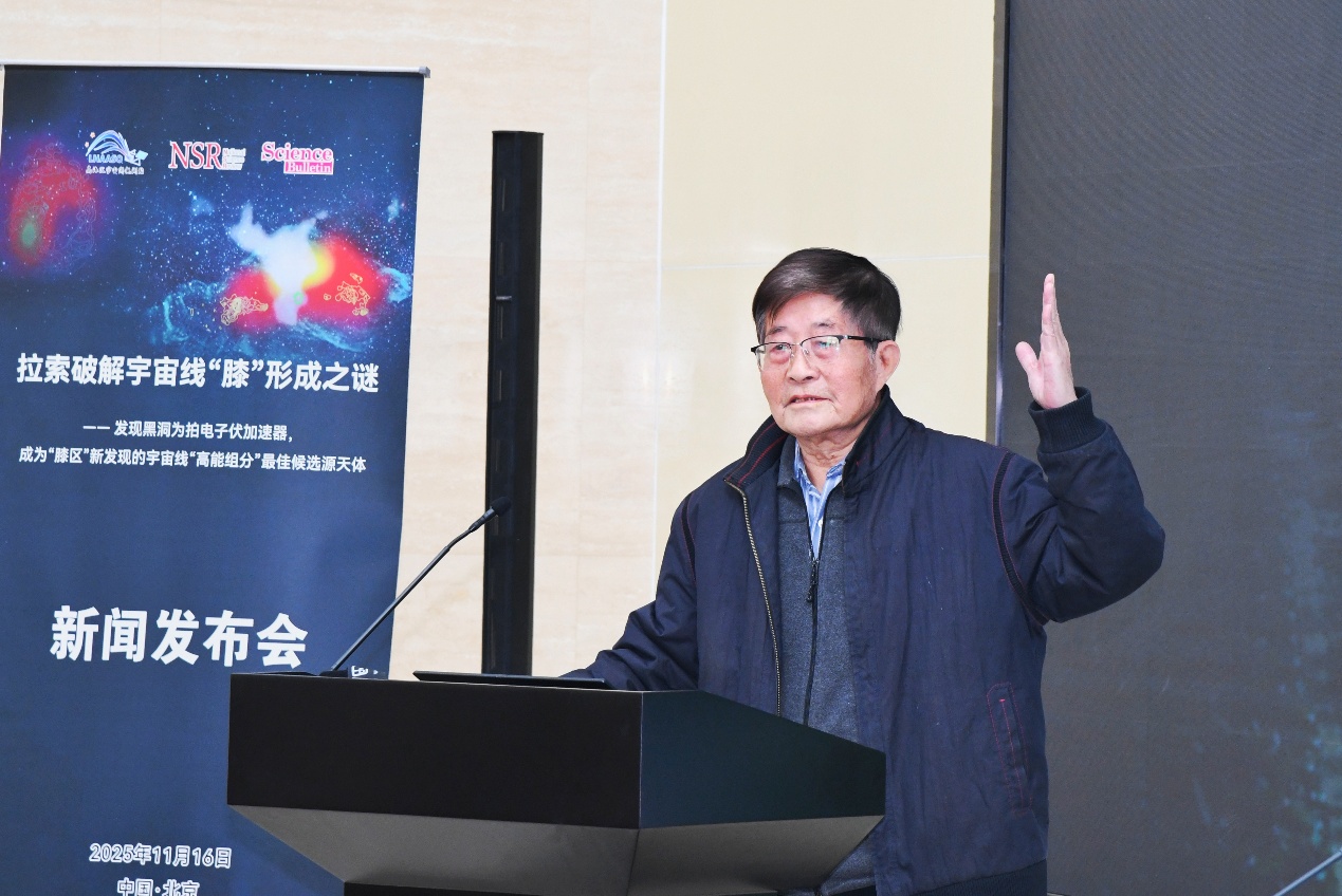 11月16日,“拉索破解宇宙线‘膝’形成之谜”成果新闻发布会在北京高能所召开,发布高海拔宇宙线观测站(LHAASO,拉索)两项具有里程碑意义的科学成果,分别发表于《National Science Review》与《Science Bulletin》,由中国科学院高能物理研究所、南京大学、中国科学技术大学、罗马第一大学等机构完成。观测发现:1)黑洞吸积驱动的微类星体是银河系中强大的粒子加速器,能够将质子加速至拍电子伏(PeV)能段;2)宇宙线质子能谱“膝区”显现超出预期的高能组分,黑洞正是其最可能的候选源天体。这一发现不仅揭示了宇宙线起源的关键机制,也为理解黑洞系统的极端物理过程开辟了一条新途径。