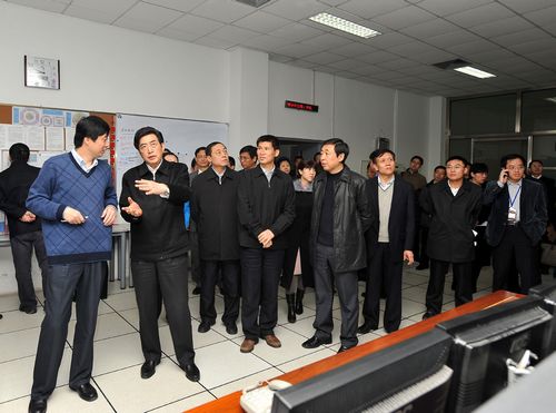 郭金龙一行视察了北京正负电子对撞机、北京同步辐射装置和部分高能所高新技术成果,并在座谈会上首先听取了高能所副所长姜晓明汇报的高能所现状及发展规划、中科院基础局局长刘鸣华汇报的北京综合研究中心的初步建设方案。