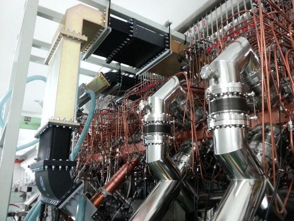 高能所负责研制的ADS注入器I的RFQ采用325MHz射频频率,腔体由四节腔组成,长达4.7m,可提供35kV-3.2MeV的加速,采用连续波模式运行,是ADS加速器极为关键的设备。2014年5月中旬,高能所完成了1号厅隧道内离子源、RFQ、耦合器和移动测量平台的总体安装。