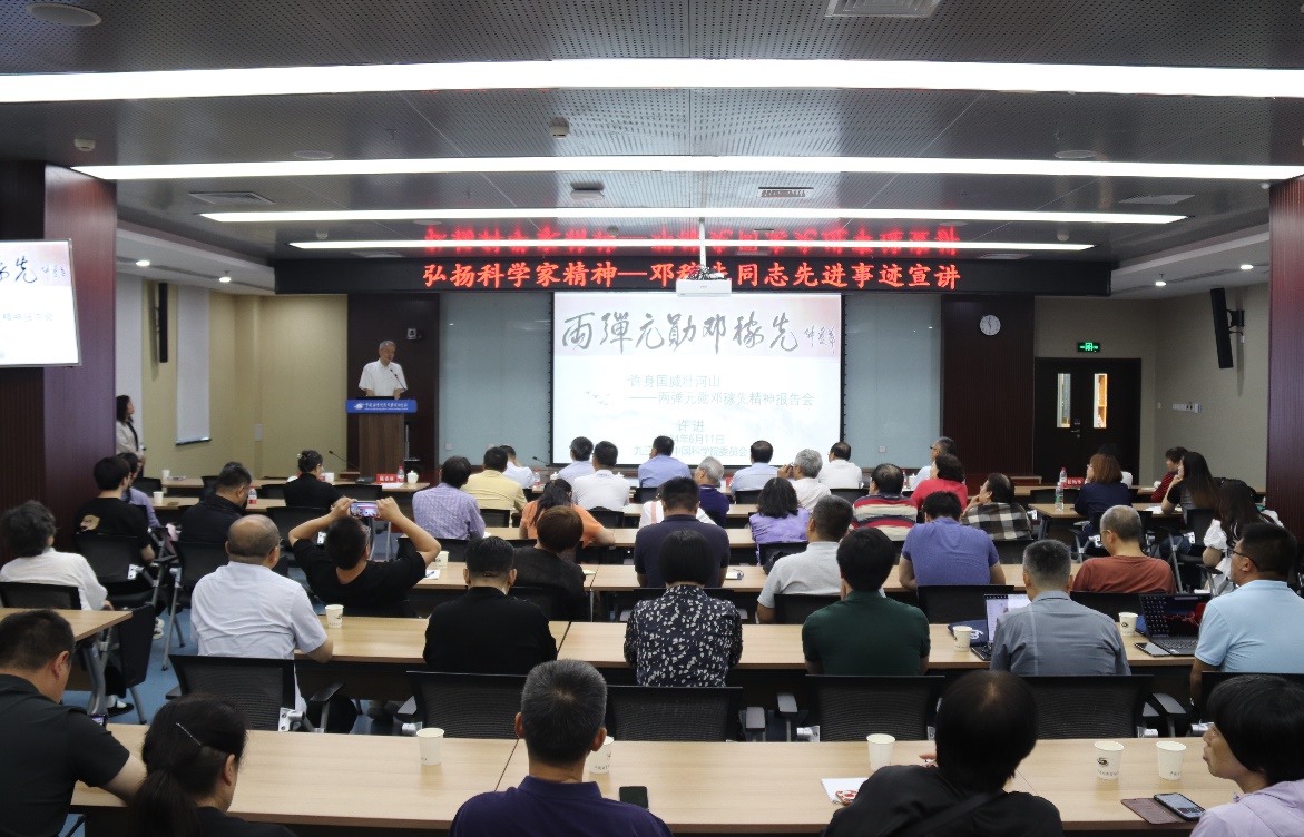 随后,九三学社中央宣讲团副团长、邓稼先妻侄、全国政协委员许进作邓稼先先进事迹宣讲。他通过大量详实珍贵的图片、感人至深的故事,讲述邓稼先辛劳的工作和平凡的生活,讲述他可歌可泣的一生。重点讲述了邓稼先一生的两次重要选择,一是投入新中国的怀抱,二是接受核武器理论研究任务,展示了邓稼先对祖国的无限忠诚、强烈的使命感、无私的奉献精神和深厚的科学造诣,以及珍爱友谊、尊老爱幼的优秀家风。邓稼先的身上集中体现了“两弹一星”精神。“两弹一星”精神是各种精神的聚合,有不为名利、全心全意为人民服务的中国共产党根本精神,有集思广益、共同建设祖国的集体精神,有自力更生、艰苦奋斗的民族精神,还有严谨求实、勇于探索的科学精神。
