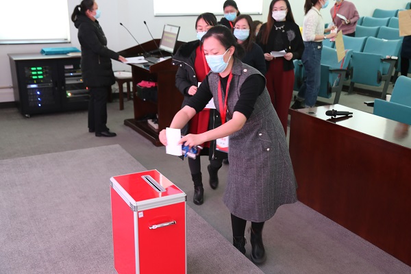 选举大会由总监票人、上届妇委会副主任于梅娟主持。经过无记名投票,王欢、方秀华、邢天虹、孙越、苑辉、温雪梅、赵丽娜、晋文媛、董琳琅(按姓氏笔画排名)当选为新一届妇委会委员。