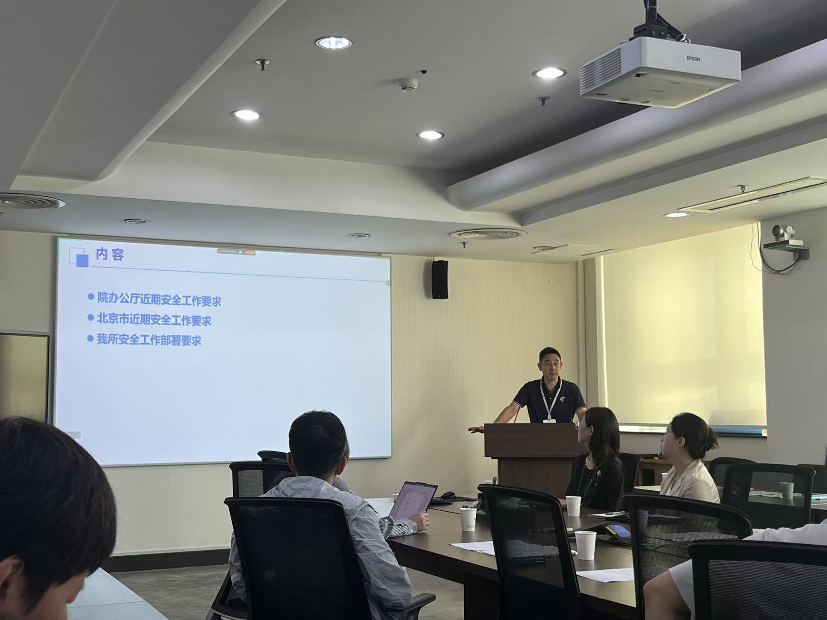 梁键传达了在首都重大活动临近背景下上级部门对安全工作的最新要求,部署了本阶段全所安全重点工作。他强调,各部门要提高政治站位,强化风险意识,全面开展安全风险排查整治,坚决守牢安全底线,切实保障重大活动期间研究所的安全稳定。