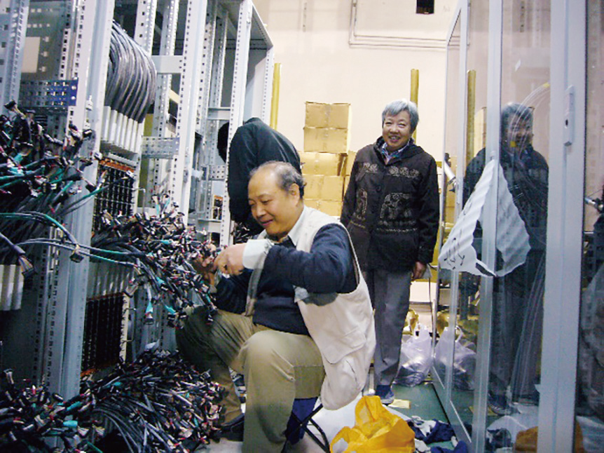 清楚且坚定地给出答案,是在两年后。当时回所后正赶上BESⅢ电磁量能器安装,不光是全组职工和学生,在电缆安装的最紧要关头,甚至发动了整个中心的老师来支援,连当时的外籍学生和中心主任都参加到电缆安装的战斗中。工作没有差别,一律都是最基本的电缆拆封、捋直,按序传送至指定的电缆槽中。而电子学组的我们这些年轻小伙子则都爬钢架、钻沟槽,将电缆按照次序整理,并用绑扎带紧固。简单、枯燥,但这就是科学研究的一部分。由于工程进度非常紧张,所有人都放弃了暑假的休息。当时还是学生的我也默默地退掉了好不容易“抢票”买到的回家卧铺。不过,当最后看到六千多根电缆整齐地安装在谱仪钢架上时,我再次感觉到了那种巨大的成就感,那是一种手把手抚育孩子长大成人的欣喜。而参加了全过程的我心里知道,这都是我们一个月劳动努力的结果。以至于现在每当我看到网上那些所谓“国外电缆安装艺术”的帖子时,我都会不屑的回复到:“谁说中国人拉不好电缆?欢迎来参观BESⅢ电磁量能器电子学机房。”而现在每当在专招吃到大拌菜和小墨鱼红烧肉时,我都会回想起电缆安装的那些日日夜夜,因为这是我们劳累一天晚上聚餐时最常点的菜,对我来说也是凝聚了记忆的两道菜。安装完成庆功的那天,大家兴奋且自豪的在量能器光洁的金属外壳上用油性笔签上自己的名字。这是那么一个荣誉且庄严的时刻,从今往后,BESⅢ的谱仪上永远留下了我们的名字。我还记得我将我的名字签在了当时还是中心主任的王贻芳老师的名字下面,隐隐向往地觉得那就是我的追求。