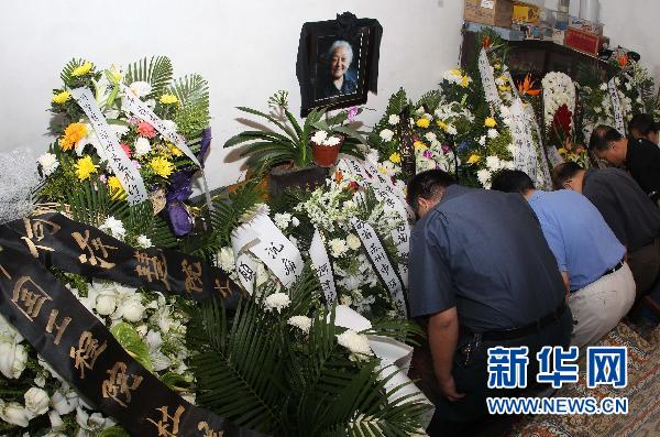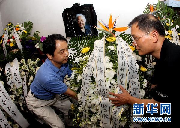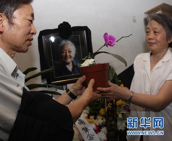 6月22日,社会各界人士在何泽慧院士家中灵堂献花吊唁。新华社记者汪永基摄