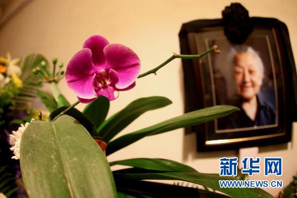 6月22日,中科院高能物理研究所敬献的花篮摆放在何泽慧院士家中灵堂。新华社记者汪永基摄