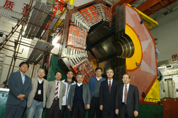 图为2005年10月17日中日高能物理合作委员会会议后,部分会议代表参观北京谱仪III建造现场