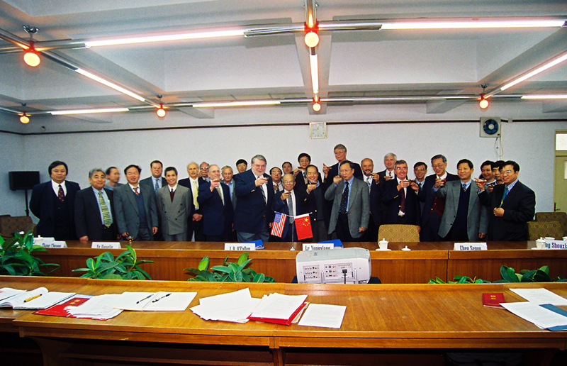 中美高能物理联合委员会第21次会议在京举行。参加会议的中国代表团成员有:路甬祥(中方主席)、张侃、陈和生、方守贤、李卫国、张闯、陈森玉、杜东生、徐洪杰、安建基、赵政国、陈勋远、马力、胡天斗、曹京华、侯儒成、许同舟、邓铁军。会议围绕下一步高能物理的发展方向,和为实现发展目标而选择的BEPCII方案,讨论双方如何开展工作,并制定出下一年度的具体合作计划。