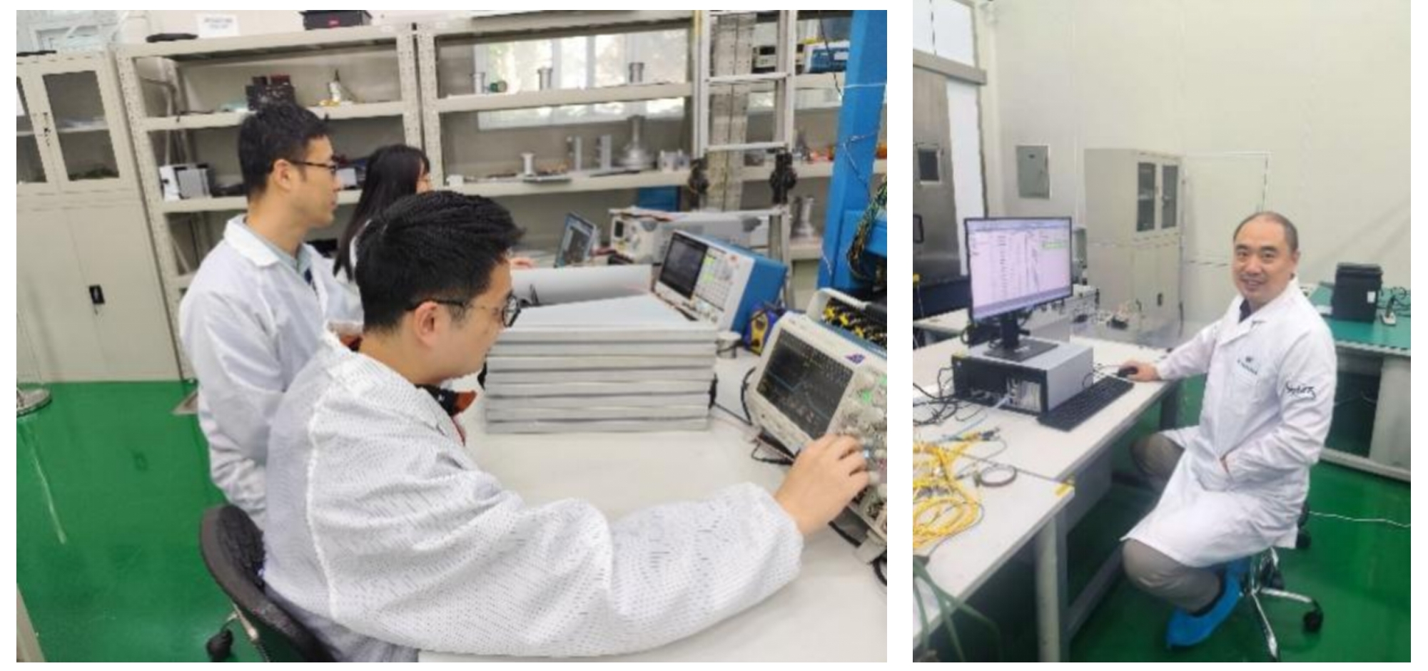 为确保HERD项目能在10月顺利转入初样阶段,量能器硅光二极管(PD)团队在国庆期间与时间赛跑。团队人员全力解决首次束流试验暴露的技术难题,同步开展数据采集与触发时序的优化验证。作为保障HERD获取高可靠数据的关键一环,面对PD读出、电箱背插连接改造、数传备案等多个技术难点,团队负责人刘鑫与雒涛这两位老党员挺身而出。他们带领新组建的团队集思广益,迎难而上,以高度的责任感确保项目关键节点如期达成,为HERD项目的稳步推进扫清障碍。