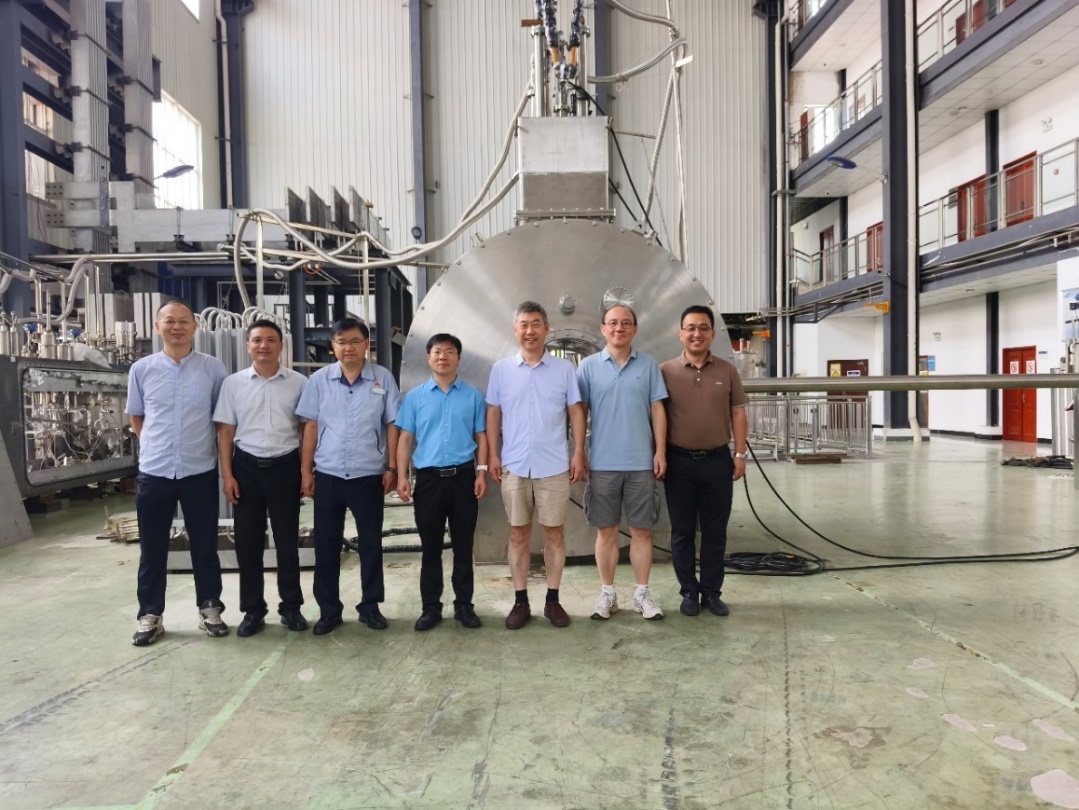 该磁体具有大孔径、高场强和抗辐射的特点。其室温孔径860 mm,外径2300 mm,长1622 mm。励磁测试过程中无失超锻炼达到设计电流3945 A,无轭铁中心轴线上最高磁场强度3.91 T(加轭铁磁场将提高至约4.5 T)。EMuS设计方案中的俘获磁体轴线上自靶中心沿束流方向近 2 m范围内磁场强度从5 T下降至2.5 T,采用4个线圈直径从1 m 增加至1.4 m的设计来实现。此次研制成功的磁体其线圈为EMuS俘获磁体磁场最高的一个线圈。该磁体于近期通过验收,测试结果达到设计要求。中国科学院强磁场科学中心陈文革研究员担任验收专家组组长,成员包括来自高能所、强磁场中心、上海艾普强粒子设备有限公司等国内多家单位的专家。