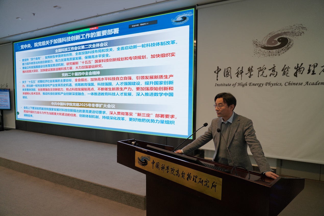 王生随后作题为《以高质量党建推动实现高水平科技自立自强》的2025年度党建工作专题报告。他从政治建设统领、作风建设深化、干部人才队伍建设等七大方面全面总结党建工作成效,指出,高能所党委以习近平新时代中国特色社会主义思想为指导,坚决贯彻执行党中央和院党组重大决策部署,深入学习贯彻党的二十大以及二十届二中、三中、四中全会精神,巩固拓展深入贯彻中央八项规定精神学习教育成果,持续加强党的作风建设,大力弘扬科学家精神,坚持以高质量党建促进科技创新高质量发展,为确保“十四五”圆满收官,推进研究所聚焦主责主业,抢占科技制高点提供坚强政治保证。报告提出2026年党委工作规划。