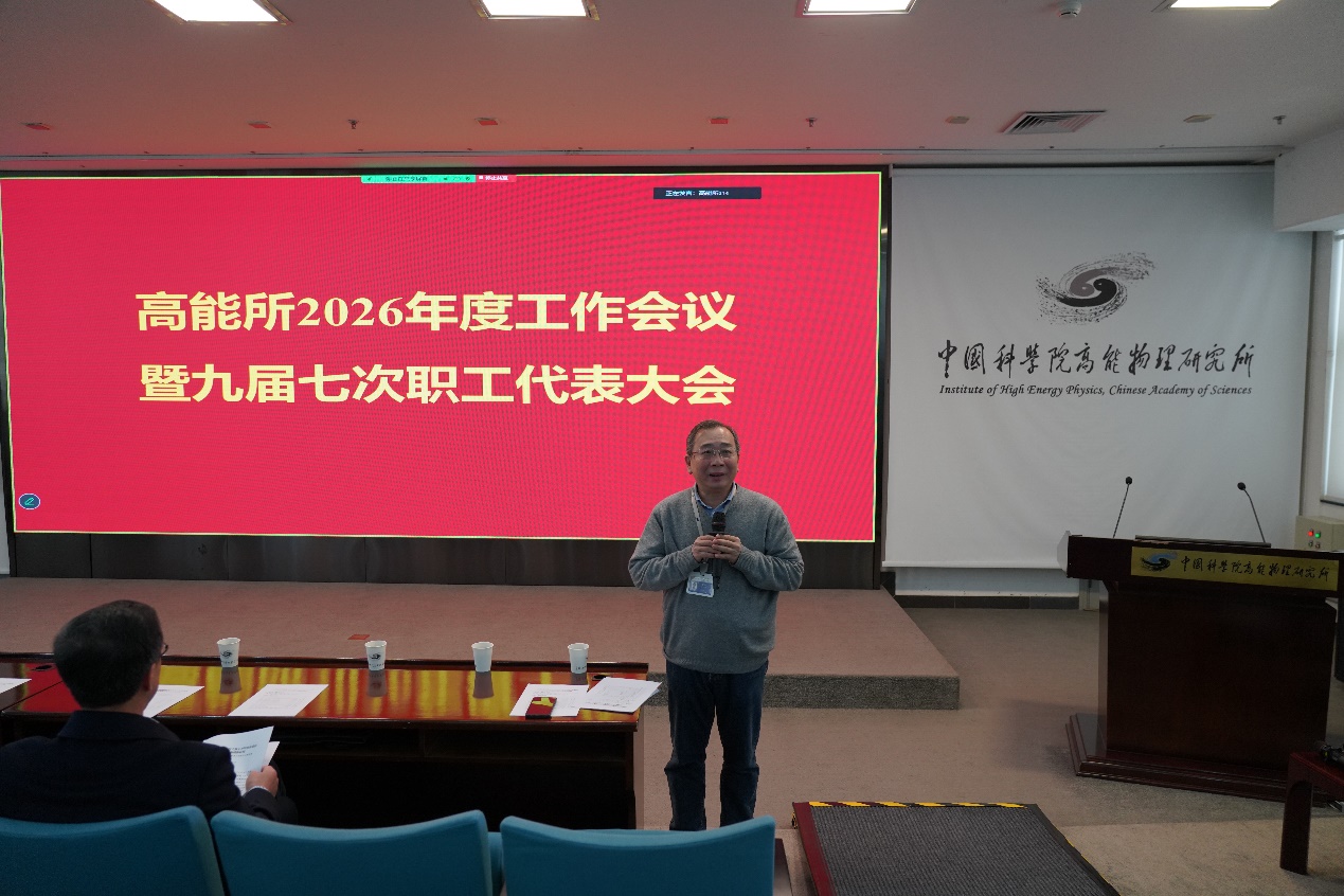 1月29日,中国科学院高能物理研究所2026年度工作会议暨九届七次职工代表大会召开。所领导班子成员,院士,党委、纪委委员,学术、学位两委委员,各大科学工程负责人,中层干部、各党支部(总支)书记、职工代表等各类人员 400余人通过现场及线上形式参会,东莞研究部、济南研究部设视频分会场。高能所副所长董宇辉、党委书记王生分阶段主持会议。